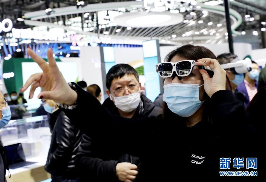 2月23日,参观者在展会现场试用一款智能眼镜。新华社记者 方喆 摄