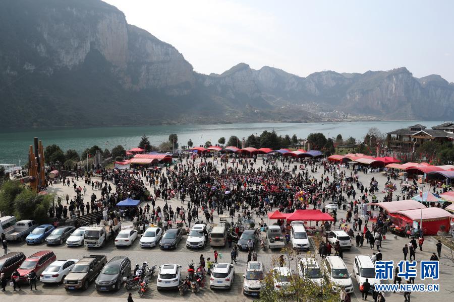 2月17日,贵州省毕节市黔西县新仁苗族乡化屋村同心广场游人如织。新华社发(史开心 摄)