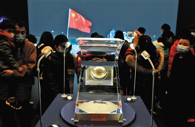 昨天上午,“月球样品001号·见证中华飞天梦”展览开幕式暨捐赠入藏仪式在国家博物馆举行,随后展览向公众开放。