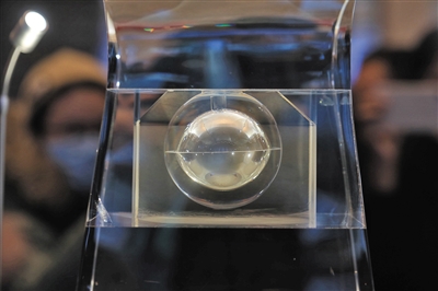 昨日,“月球样品001号·见证中华飞天梦”展览开幕式暨捐赠入藏仪式在中国国家博物馆举行。图为观众在参观月球样品001号。摄影/记者 浦峰