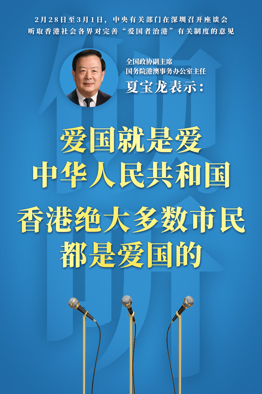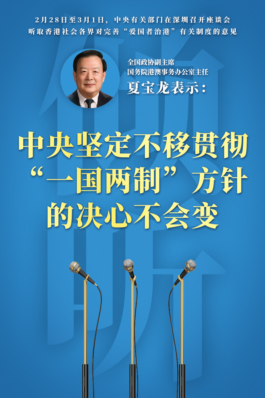 中央有关部门举办座谈会听取香港社会各界对完善“爱国者治港”有关制度的意见 夏宝龙出席
