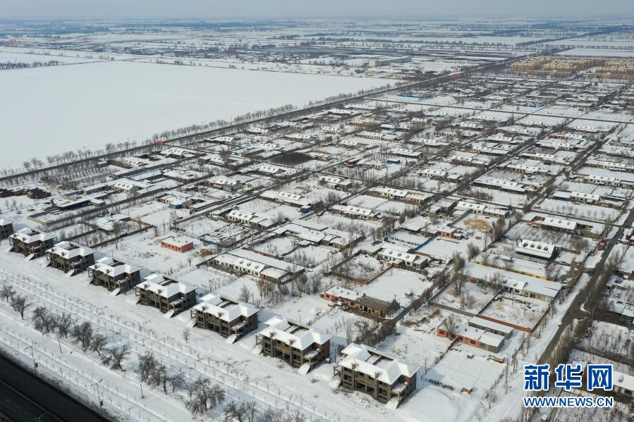这是新疆生产建设兵团第六师五家渠市一〇二团梧桐镇4连一角(2月27日摄,无人机照片)。新华社记者 丁磊 摄