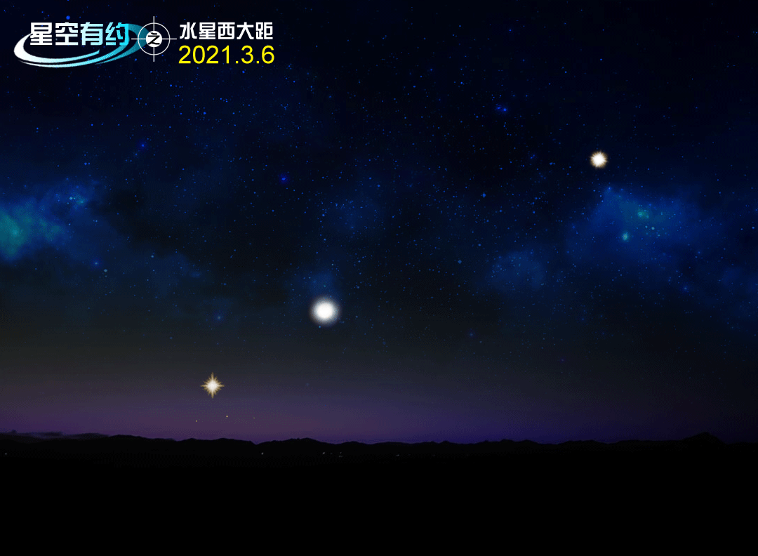 据了解,2021年,水星一共有六次大距现象,“东大距”和“西大距”各三次,下一次水星大距发生在5月17日,为“东大距”。