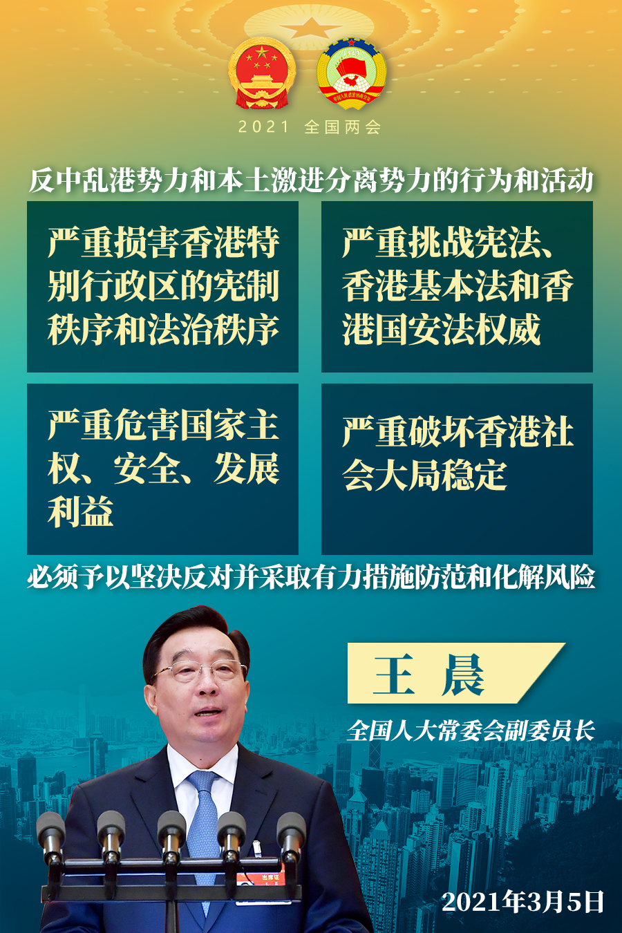 香港回归祖国后重新纳入国家治理体系,《中华人民共和国宪法》和《中华人民共和国香港特别行政区基本法》共同构成香港特别行政区的宪制基础。香港特别行政区实行的选举制度包括行政长官的产生办法和立法会的产生办法,是香港特别行政区政治体制的重要组成部分,应当符合“一国两制”方针,符合香港特别行政区实际情况,确保“爱国者治港”,有利于维护国家主权、安全、发展利益,保持香港长期繁荣稳定。香港回归以来,国家始终坚持全面准确贯彻落实“一国两制”、“港人治港”、高度自治的方针,坚持依法治港,维护宪法和香港基本法确定的香港特别行政区宪制秩序,支持香港特别行政区民主发展,保障香港特别行政区居民依法行使民主权利。同时必须看到,近几年来,特别是2019年香港发生“修例风波”以来,反中乱港势力和本土激进分离势力公然鼓吹“港独”等主张,通过香港特别行政区选举平台、立法会和区议会议事平台或者利用有关公职人员身份,肆无忌惮进行反中乱港活动,极力瘫痪香港特别行政区立法会运作,阻挠香港特别行政区政府依法施政;策划并实施所谓“预选”,妄图通过选举掌控香港立法会主导权,进而夺取香港管治权;一些外国和境外势力通过立法、行政等方式和驻港领事机构、非政府组织等渠道公然干预香港事务,对我国有关人员粗暴进行所谓“制裁”,明目张胆为香港反中乱港势力撑腰打气、提供保护伞。这些行为和活动,严重损害香港特别行政区的宪制秩序和法治秩序,严重挑战宪法、香港基本法和香港国安法权威,严重危害国家主权、安全、发展利益,严重破坏香港社会大局稳定,必须予以坚决反对并采取有力措施防范和化解风险。