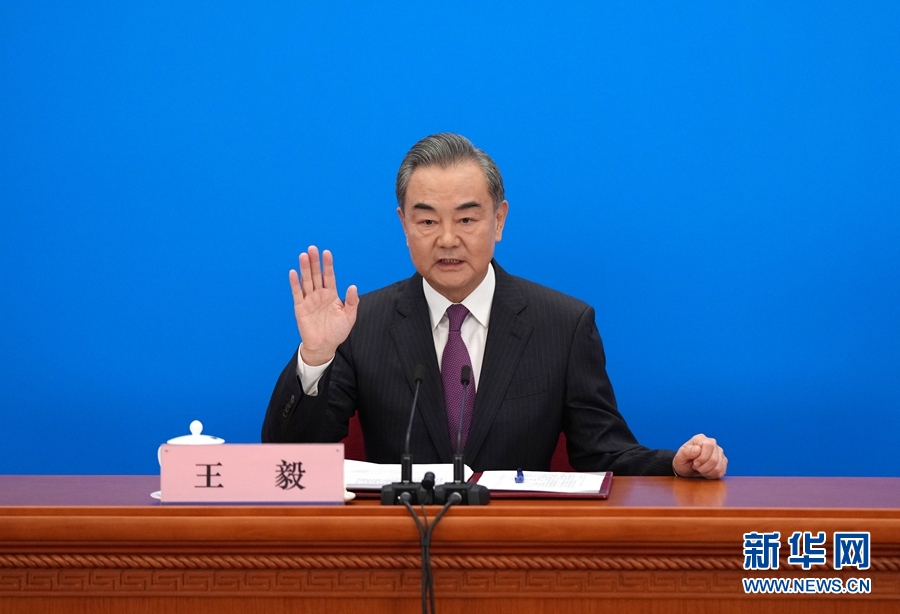 3月7日,十三届全国人大四次会议在北京人民大会堂新闻发布厅举行记者会,邀请国务委员兼外交部长王毅就“中国外交政策和对外关系”相关问题回答中外记者提问。为有效防控疫情,共同维护公共卫生与健康,记者会采用网络视频形式进行。 新华社记者 陈晔华 摄