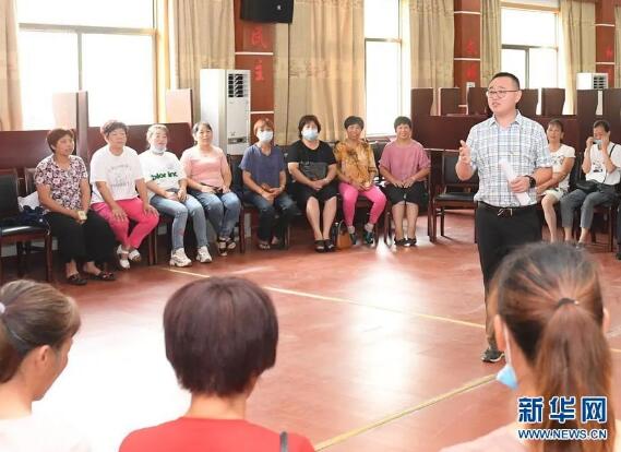 诸暨市委党校的老师在岭北镇岭北周社区文化礼堂“板凳课堂”上为群众做时政宣讲。新华社记者 翁忻旸 摄