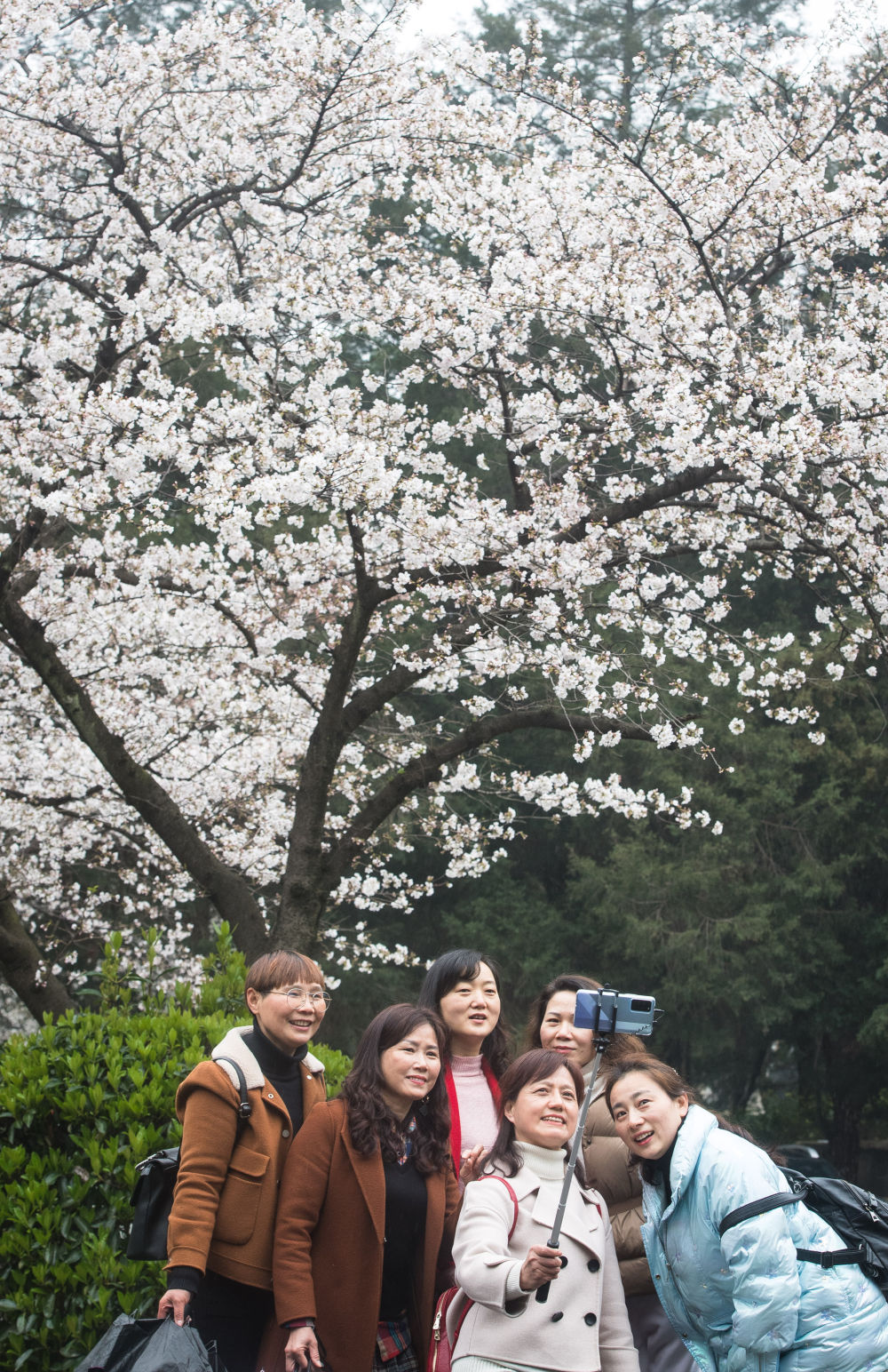 ↑ 2021年,樱花树下,赏樱的人们笑颜如花。