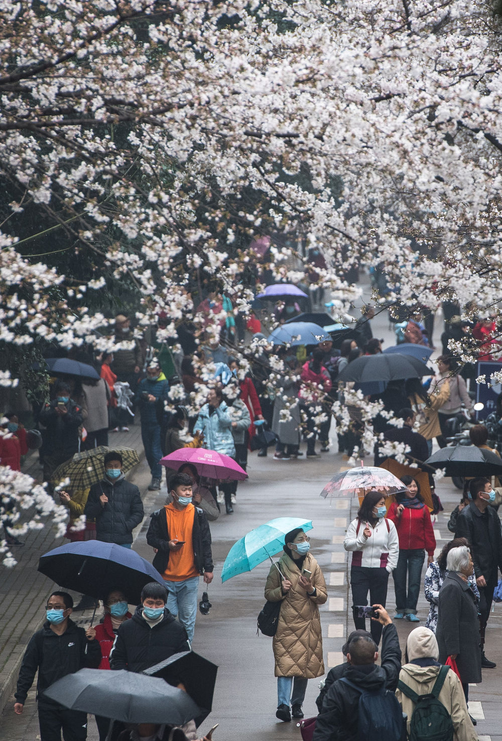 ↑ 2021年,人们不再需要“云赏樱”,可以自己在樱花树下漫步。