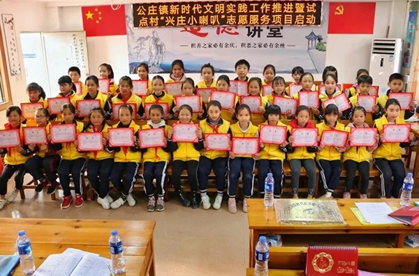 “兴庄小喇叭”志愿服务项目的第一批小喇叭们收到聘书。图片来源:文明惠州