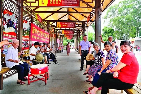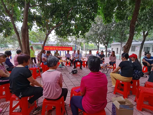 广场边、大树下,石坝镇三嘉村村民在听身边人“唠嗑”家国事。图片来源:惠州发布