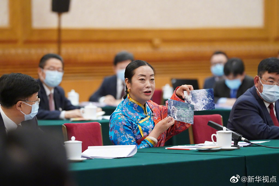 “总书记,您看,这是最近在我们家乡拍的。”3月7日下午,人民大会堂东大厅,青海代表团审议现场,两张照片吸引了习近平总书记的目光。孔庆菊代表拿出照片,请坐在对面的习近平总书记观看。一张照片中,是漫步在草丛中的荒漠猫;另一张,则是行走在树丛中的雪豹。“以前很少见的珍稀物种,现在频频现身了。”孔庆菊以此佐证,讲述生态环境的变迁。“这说明生态保护见效了。”习近平总书记凝视照片,频频点头,“特别是大家的生态保护意识也增强了,看到了生态本身的经济价值。”(摘自《共商国是纪实》 文字记者:张晓松、朱基钗 摄影记者:李学仁、黄敬文、李涛)