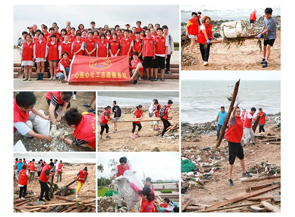 心连心社工志愿服务队开展海滩清洁活动。图片来源:荣成市文明办