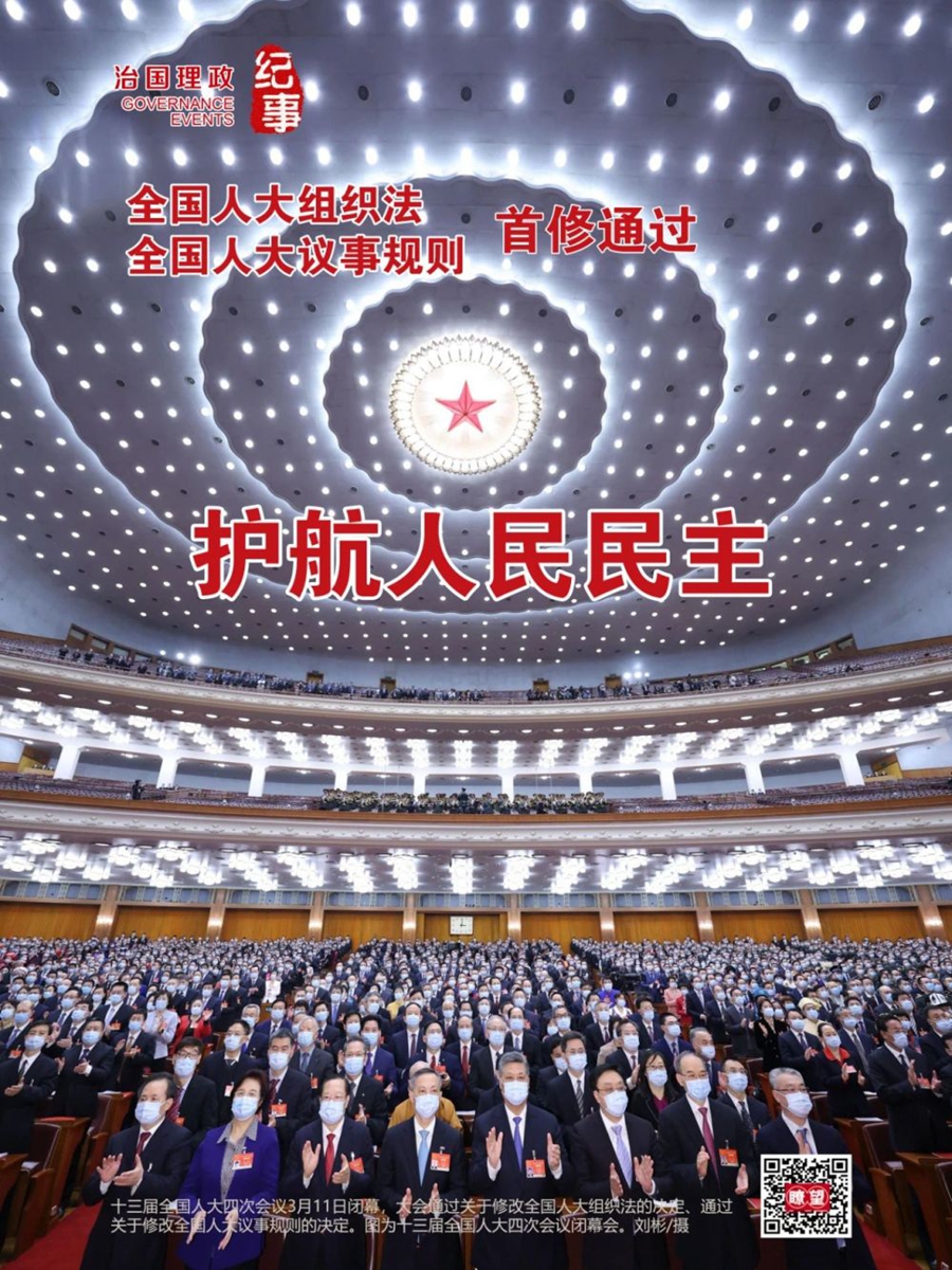 ◆ 修法的一个亮点,是将全国人大及其常委会坚持“全过程民主”写入法律,让“人民当家作主”的制度堡垒更坚固