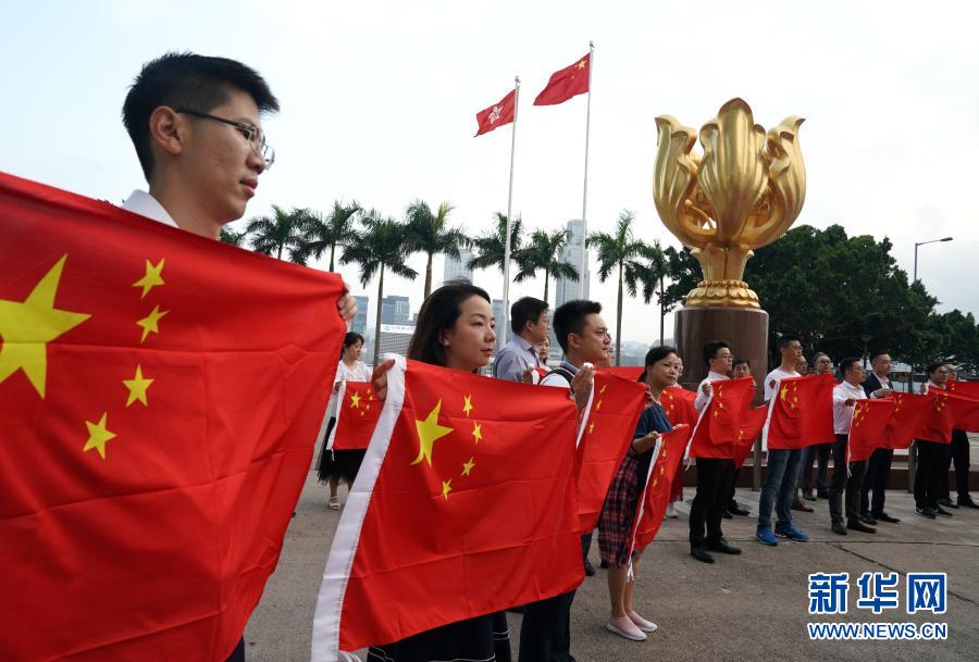 在金紫荆广场,香港青年参加国旗展示活动(2019年9月17日摄)。新华社记者 李钢 摄
