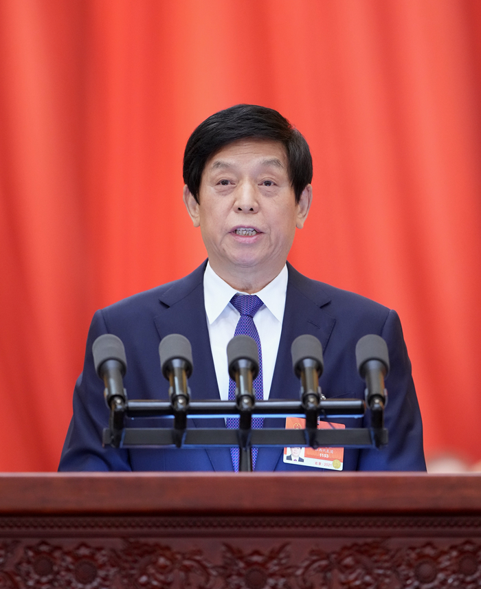 3月8日,全国人大常委会委员长栗战书向十三届全国人大四次会议作《全国人民代表大会常务委员会工作报告》。新华社记者 刘彬 摄