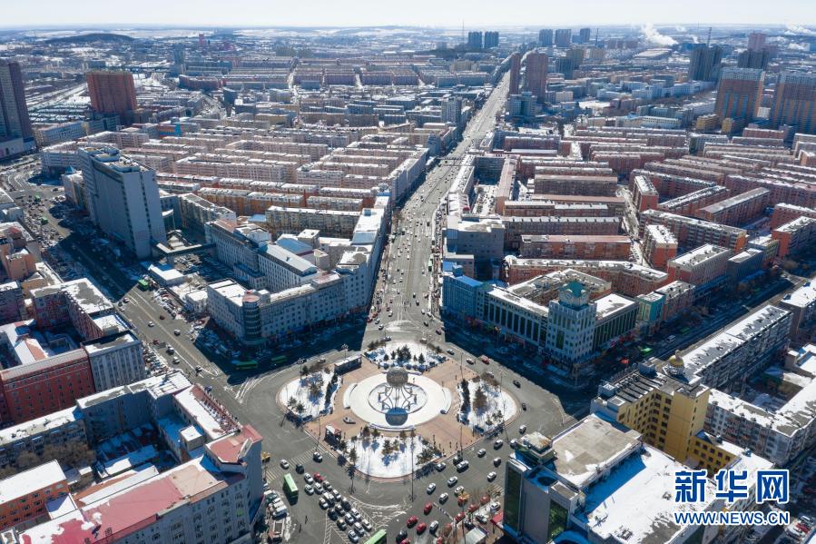 3月6日拍摄的鹤岗市城市景观(无人机照片)。新华社记者 谢剑飞 摄