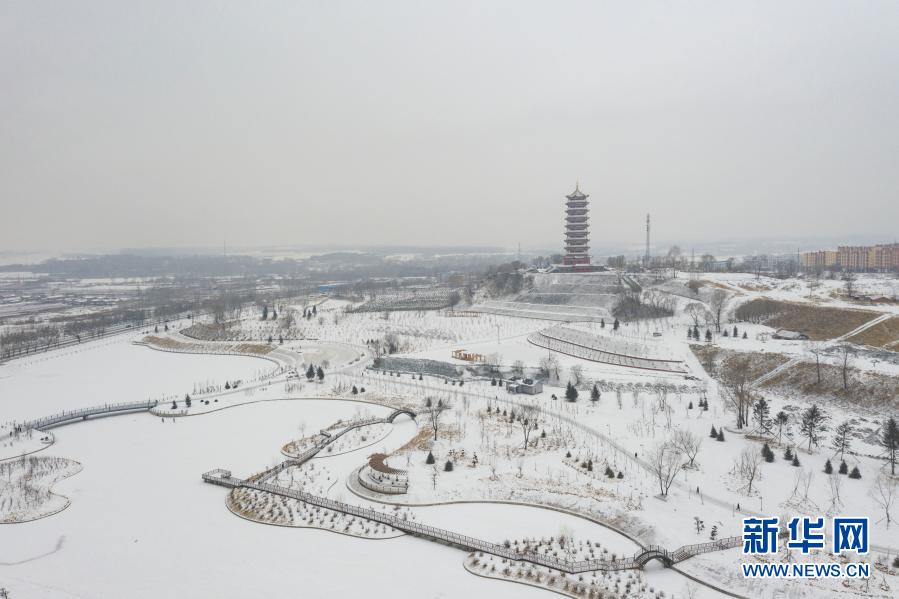 3月4日拍摄的鹤岗市欣虹湖公园(无人机照片)。新华社记者 谢剑飞 摄