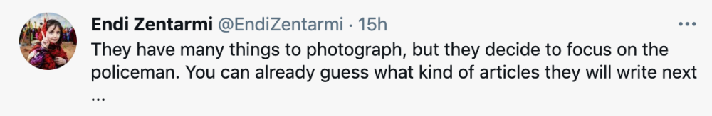 “他们明明有很多东西可以拍,但是却非要聚焦在警察身上。你已经能猜出来他们接下来要写什么样的文章了。”