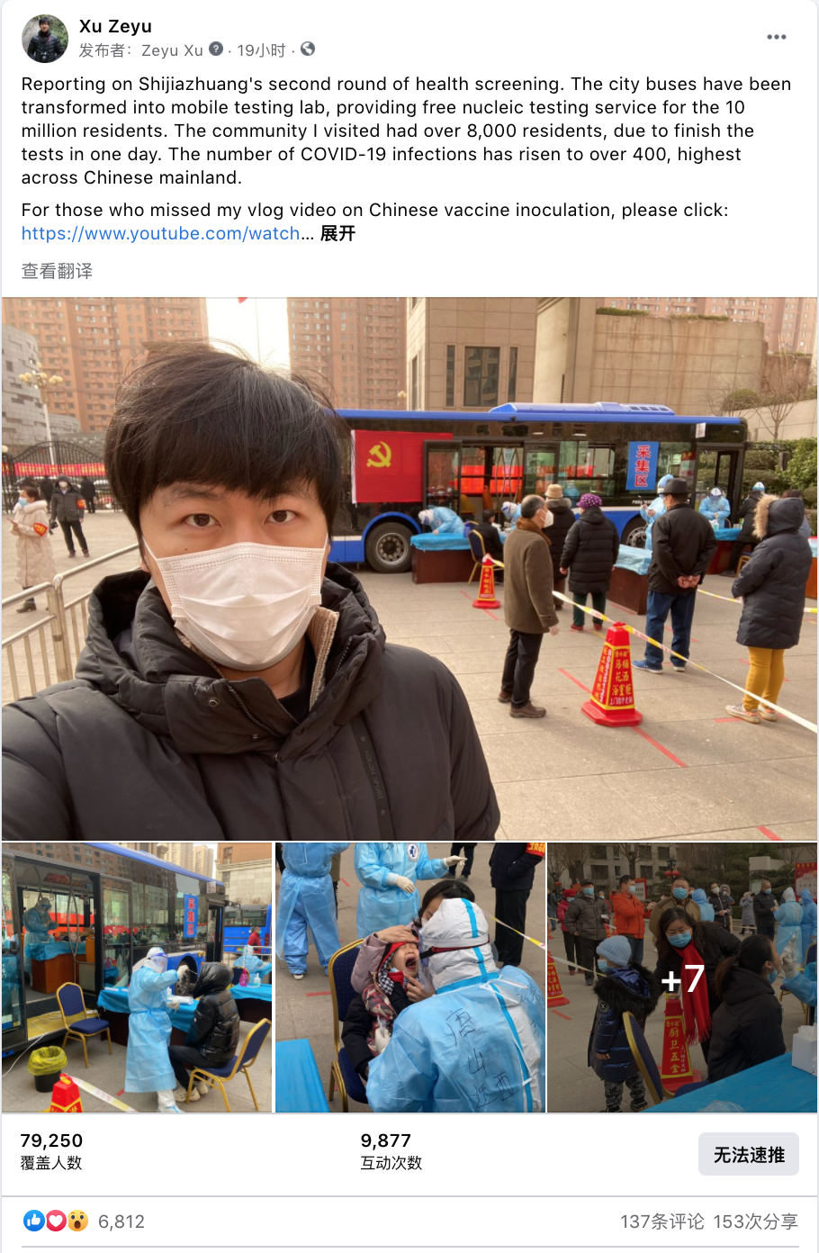 也是在这个过程中,徐泽宇开始通过个人海媒账号发布VLOG,并加强与粉丝的互动。“发第一条视频时,我的推特账号粉丝数是0。”徐泽宇说,“但第一条视频竟被数千次浏览。第二条我在方舱医院拍的视频,观看量已经到了10万+。”