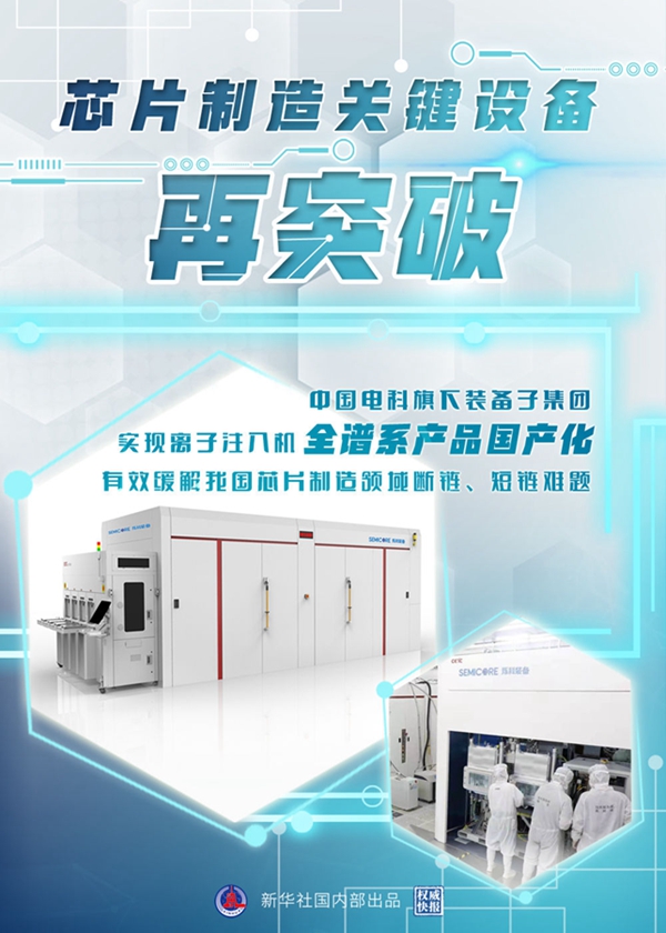 新华社北京3月17日电(记者温竞华)记者17日从中国电子科技集团有限公司获悉,该集团旗下装备子集团已成功实现离子注入机全谱系产品国产化,可为全球芯片制造企业提供离子注入机一站式解决方案。
