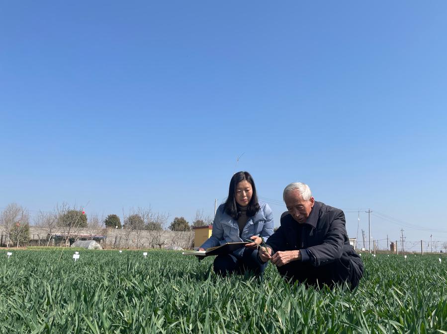 见到86岁的赵瑜时,他和研究员刘江梅正蹲在麦田里,查看长势,不时动笔记录。