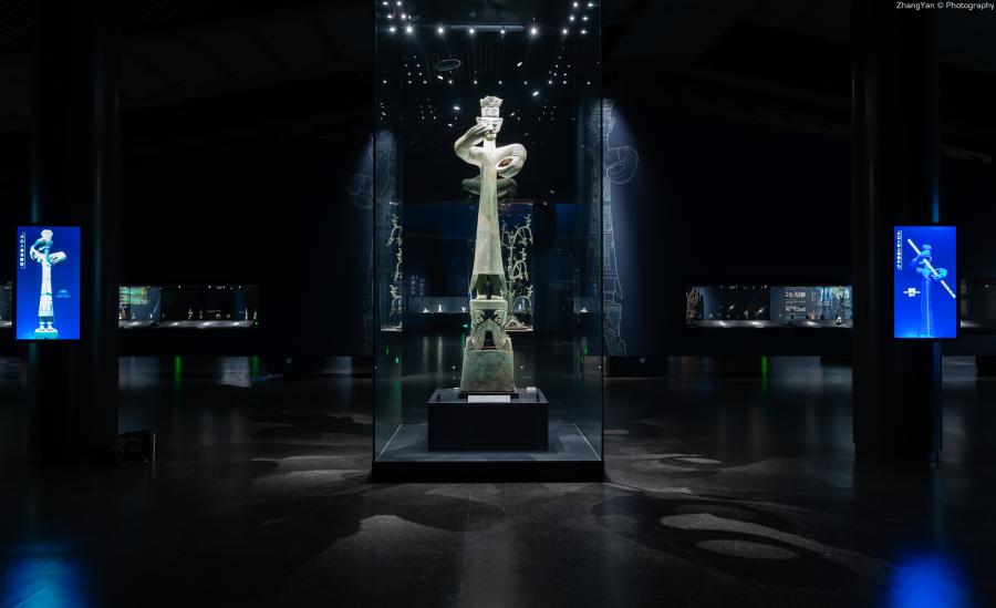 在这些文物中,有迄今全世界发现的年代最早、树株最高的青铜神树,国内现存年代最早、最大、最完整的青铜立人像,世界上绝无仅有的青铜纵目面具,有鸟、弓箭、鱼和戴冠人头像图案的金杖……透过这些古蜀王国的杰出“作品”,我们可以直观感受到古蜀文明的辉煌灿烂。