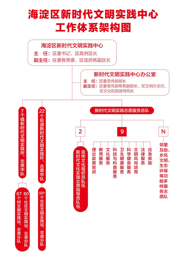 海淀区新时代文明实践中心工作体系图。