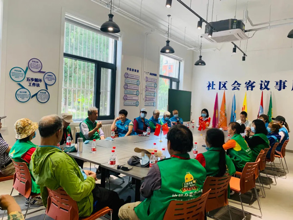 学院路街道二里庄社区文明实践站志愿者参与议事。