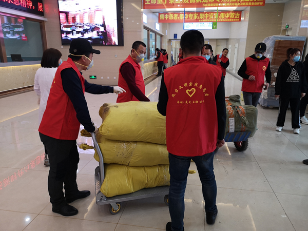 在新冠肺炎疫情防控期间,志愿者为吉林省传染病医院提供服务。