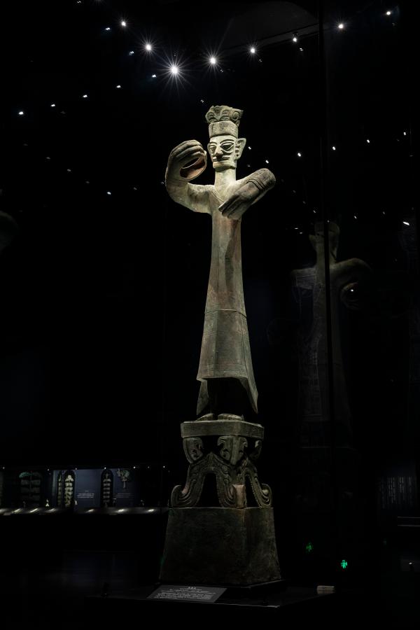 三星堆“青铜大立人”。(新华社记者沈伯韩摄)