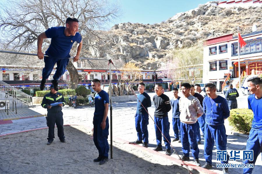 布达拉宫消防救援大队队员进行例行体能测试(3月4日摄)。新华社记者 孙瑞博 摄