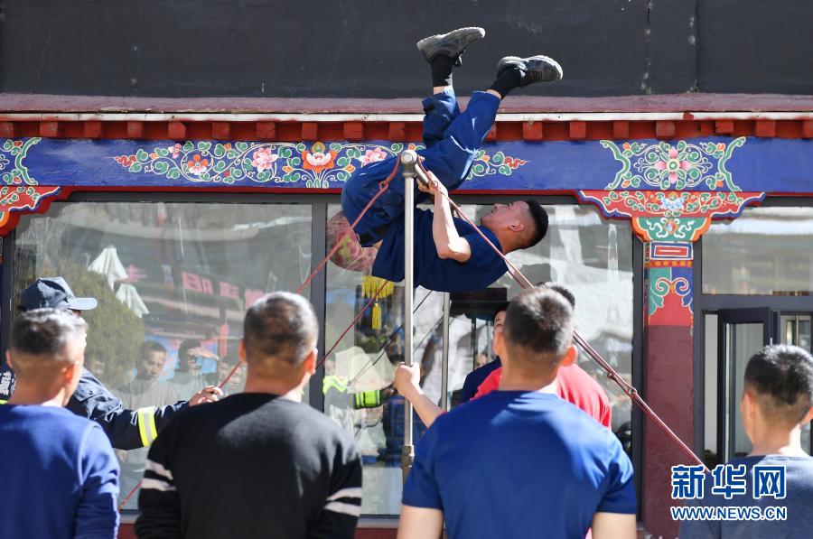 布达拉宫消防救援大队队员开展例行体能测试(3月4日摄)。新华社记者 孙瑞博 摄