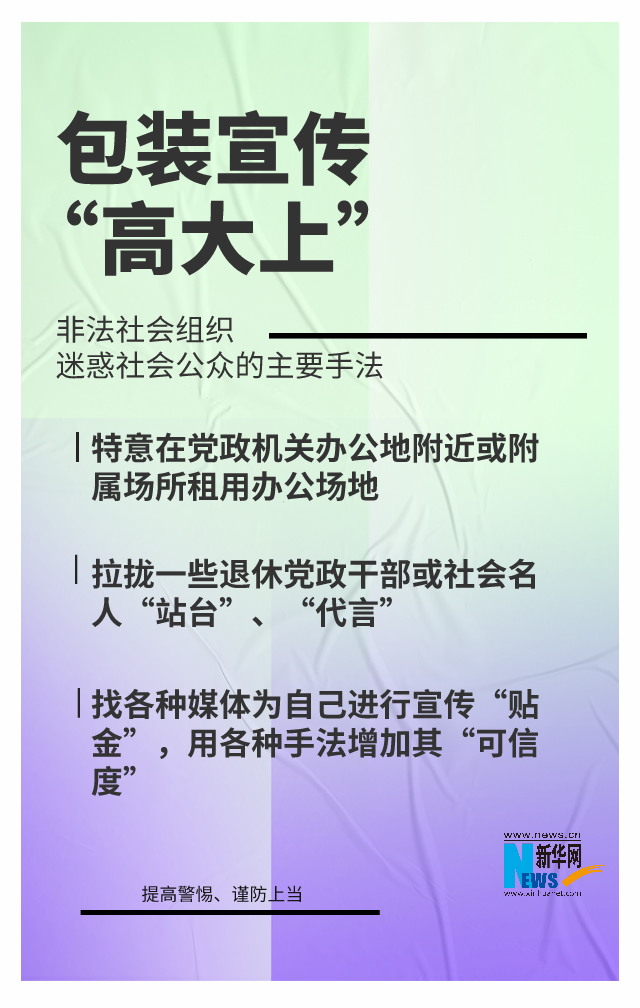 但近年来受利益驱动,一些非法社会组织不断变换手法,以假乱真、招摇撞骗,如果不注意观察、仔细识别,很可能被“忽悠”。