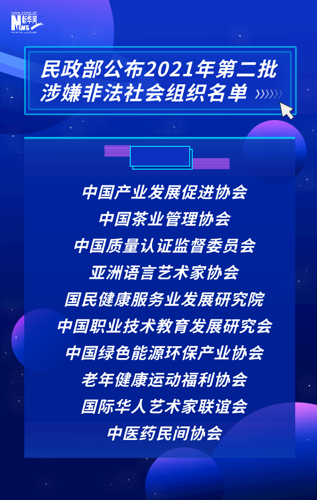就在今年2月,民政部公布了2021年第一批涉嫌非法社会组织名单。