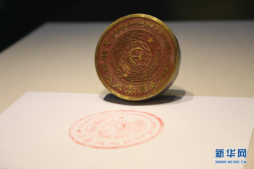 这是珍藏在甘肃省甘南藏族自治州迭部县博物馆内的“中华苏维埃共和国中央执行委员会人民委员会财政人民委员”印章。新华社记者 马莎 摄