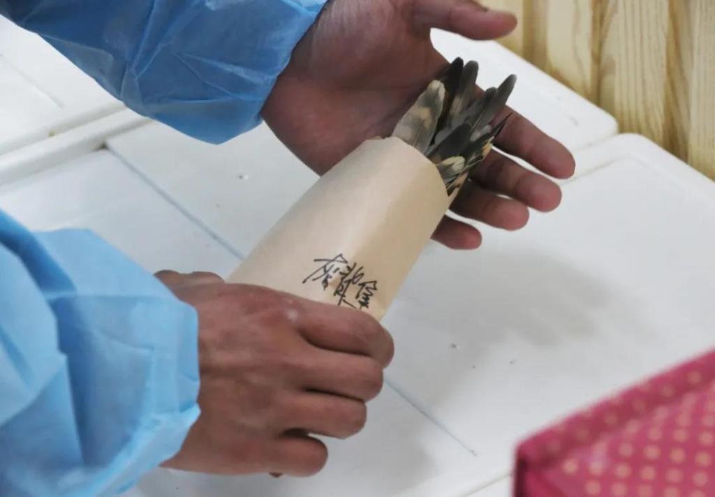 翅膀关系到猛禽的飞行和捕食,为了帮助受伤猛禽重获完整羽翼,王唯彦将死亡禽鸟的羽毛积攒起来设立“羽毛银行”。接羽时,王唯彦从“羽毛银行”找到与伤禽品种、性别、体重、年龄相仿的羽毛,用竹签将伤禽的羽管和待移植的羽毛固定在一起。接完之后完全看不出来是人工修复的,猛禽就像自己长出了羽翼一样,可以正常飞行和使用。