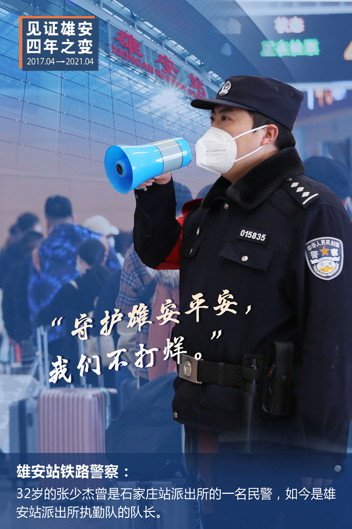 交通强国,铁路先行。京雄城际铁路已于2020年底全线开通运营,北京西站至雄安新区最快旅行时间为50分钟。雄安站每天都有铁警巡查,确保安全有序。
