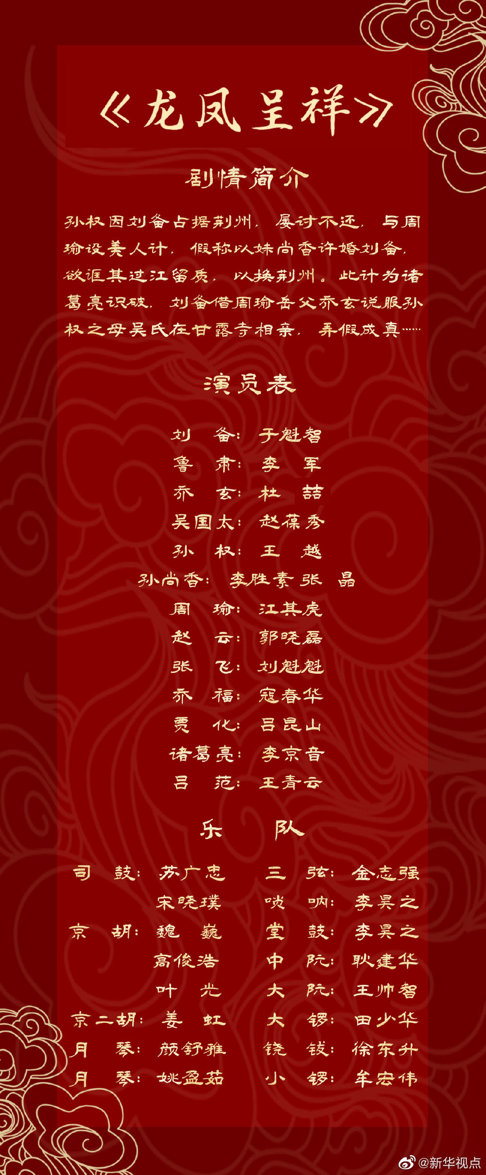 4月3日晚7:30,新华社“声在中国”栏目“空中音乐厅”将推出《龙凤呈祥》(名家版)中国戏曲学院专场演出。国家京剧院一级演员于魁智、李胜素,中国戏曲学院教授张晶,国家京剧院一级演员江其虎,上海京剧院一级演员李军,北京京剧院一级演员赵葆秀,国家京剧院一级演员寇春华等老、中、青三代京剧艺术家齐聚,联袂献上一场精彩绝伦的视听盛宴。现在下载新华社客户端,关注新华社微博、B站、抖音、快手、视频号、虎牙官方账号直播间,周六晚7:30,相约一场与艺术的华丽邂逅!