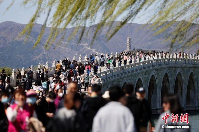 资料图:4月3日,北京天气晴好,市民在北京颐和园游览,踏青赏花。 记者 盛佳鹏 摄