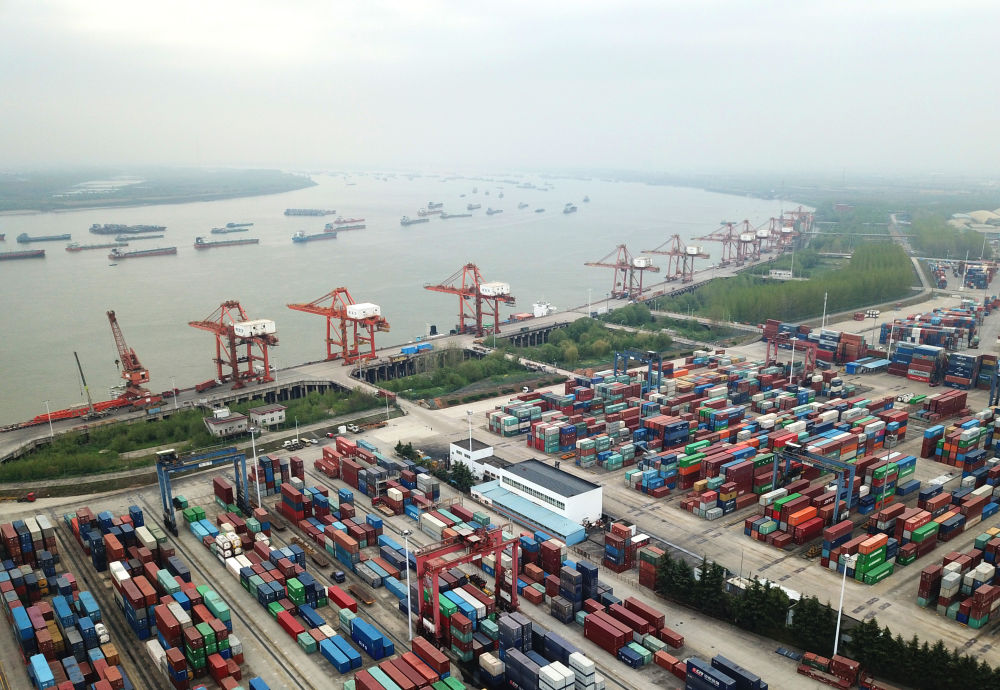 繁忙的武汉阳逻港(3月29日摄)。新华社记者程敏摄