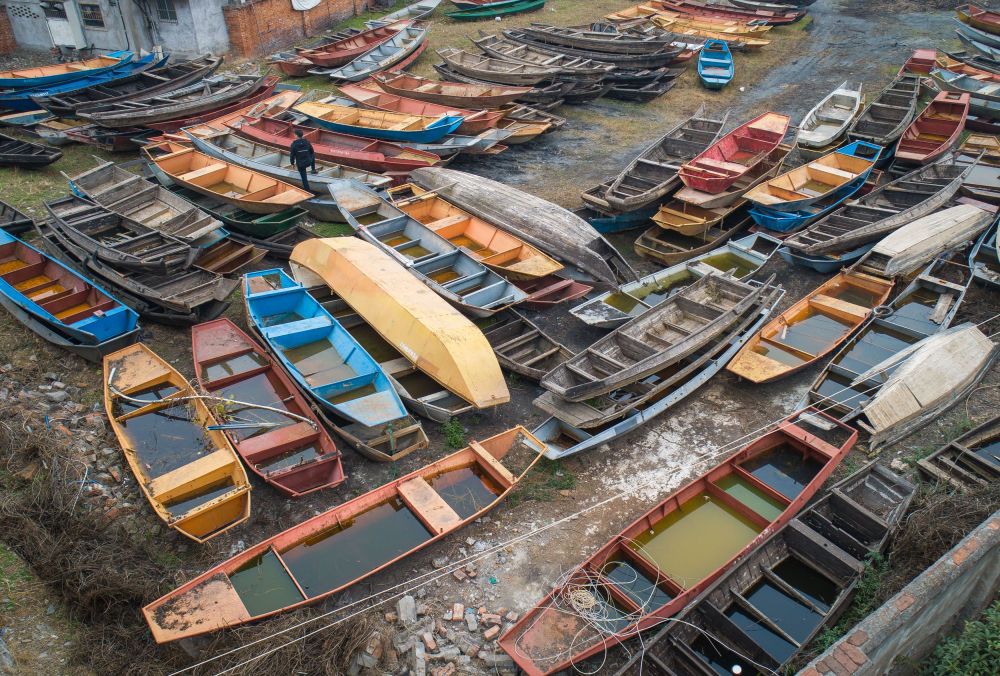 宜都市枝城镇白水港村一处“上岸”的渔船堆放点(2020年1月2日摄)。新华社记者肖艺九摄