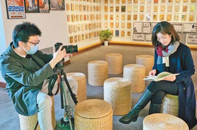 中共四大纪念馆的工作人员在拍摄短视频。资料图片