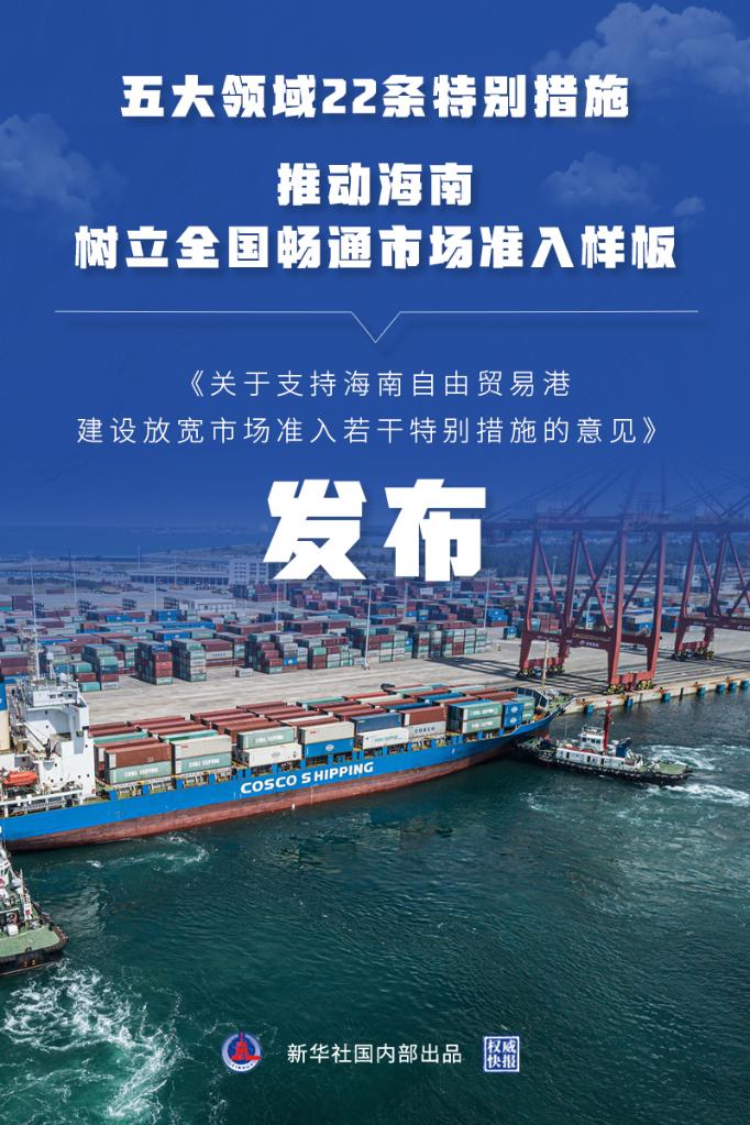 新华社北京4月8日电(记者邹多为、安蓓)海南自由贸易港建设再迎政策红利。国家发展改革委、商务部8日发布《关于支持海南自由贸易港建设放宽市场准入若干特别措施的意见》,以海南作为全国放宽市场准入试点先手棋,推出22条特别措施。