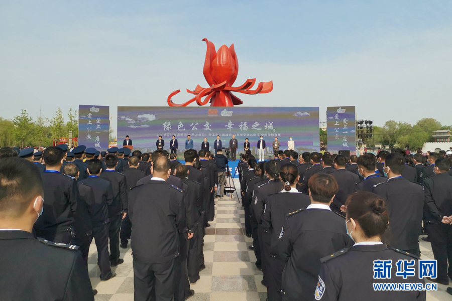 4月10日, 2021年“我的公交我的城”重大主题宣传活动在山东省菏泽市举行启动仪式。图为启动仪式现场。新华网记者 王佳宁 摄