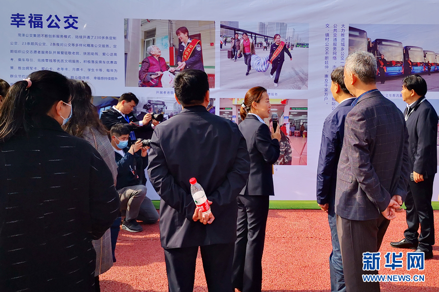 启动仪式过后,有关工作人员介绍菏泽市公交发展情况。新华网记者 王佳宁 摄
