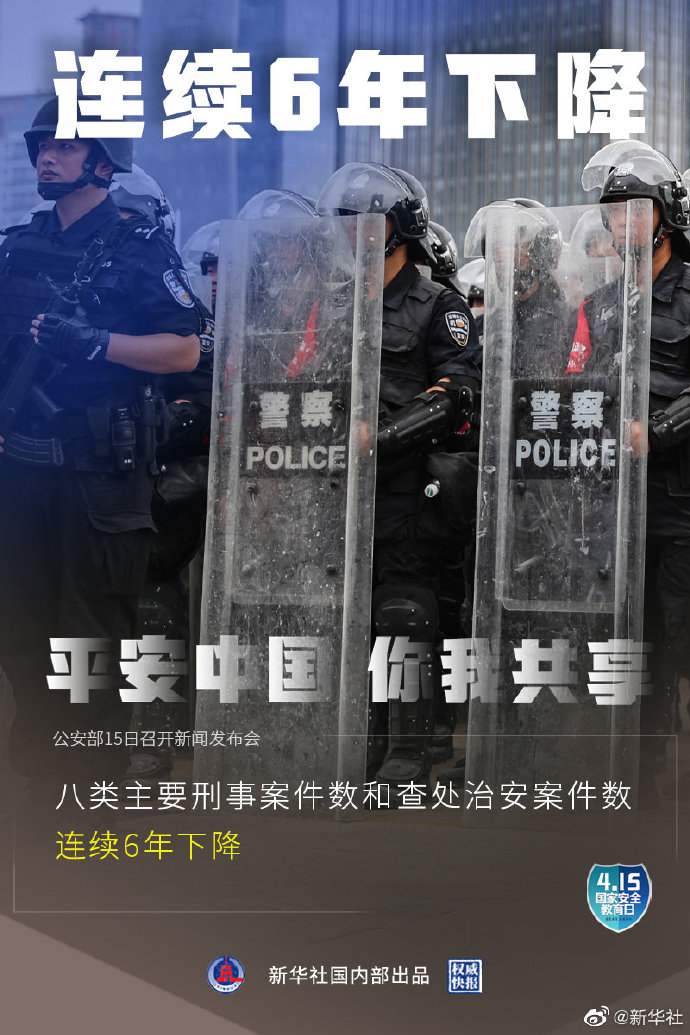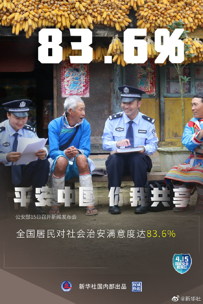 4月15日是第六个全民国家安全教育日,公安部15日召开新闻发布会介绍:2020年全国群众安全感为98.4%,全国居民对社会治安满意度达83.6%。截至2020年,全国刑事案件立案总量连续5年下降,八类主要刑事案件数和查处治安案件数连续6年下降。(记者熊丰)