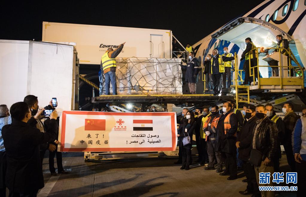 这是2021年2月23日,工作人员在埃及开罗国际机场运输中国援助埃及的首批新冠疫苗。新华社记者 邬惠我 摄