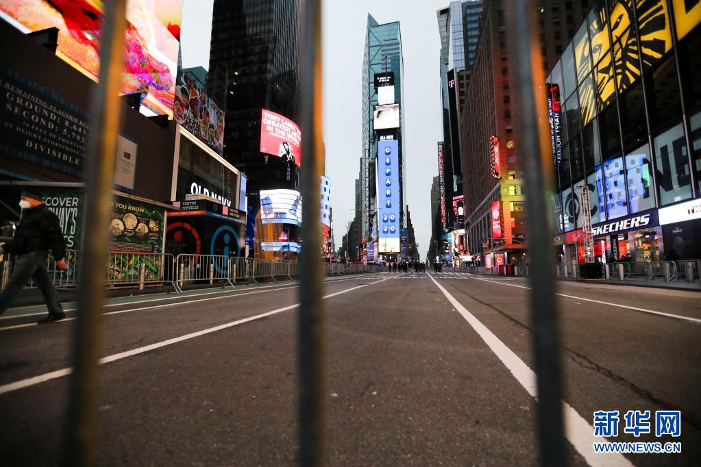 这是2020年12月31日拍摄的空荡的美国纽约时报广场。新华社记者 王迎 摄