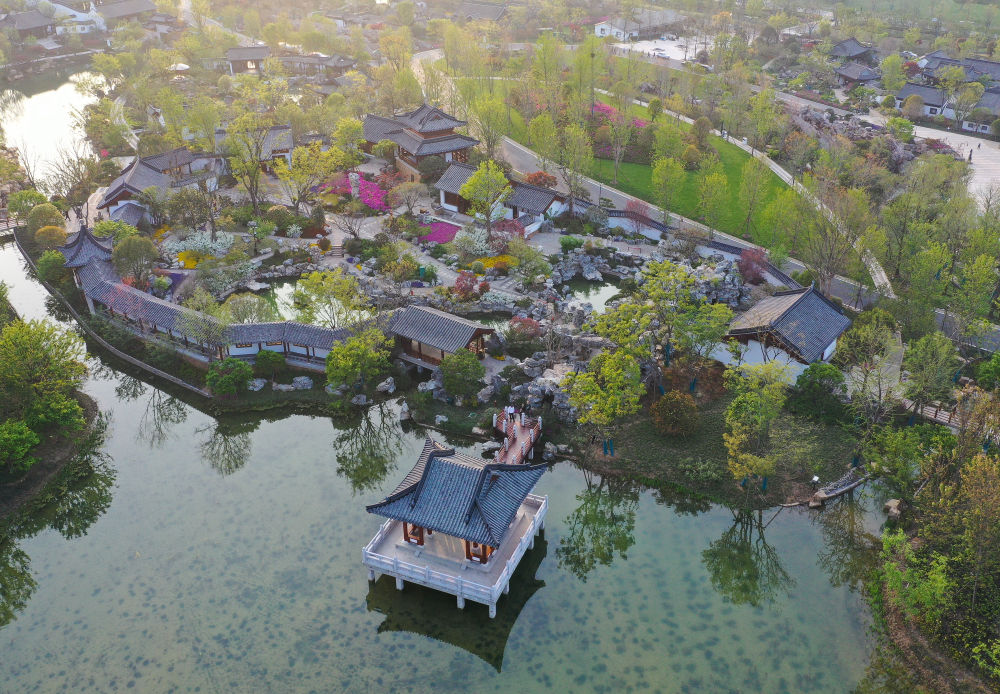 4月15日拍摄的江苏园博园(无人机照片)。 新华社记者 季春鹏 摄