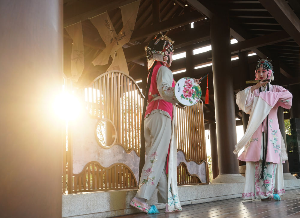 4月15日,表演者正在南京园里排练。 新华社记者 季春鹏 摄